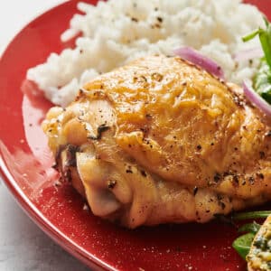 - Pat the chicken thighs dry with paper towels (this helps the skin crisp).