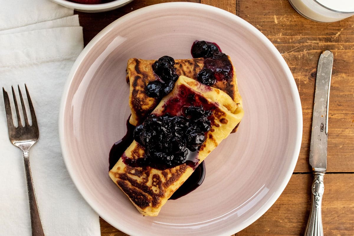Blintzes: These sweet breakfast crepes are stuffed with a creamy cheese filling, topped with berry sauce, and surprisingly easy to make.