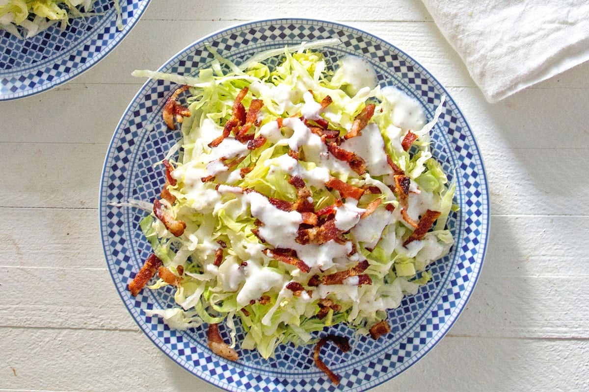 Crisp iceberg lettuce (I love me some iceberg lettuce) gets chopped into ribbons so the creamy dressing, smoky bacon, and juicy tomatoes mingle in every bite. It’s fresh, crunchy, and totally satisfying, whether you serve it as a side or pile it high for lunch.