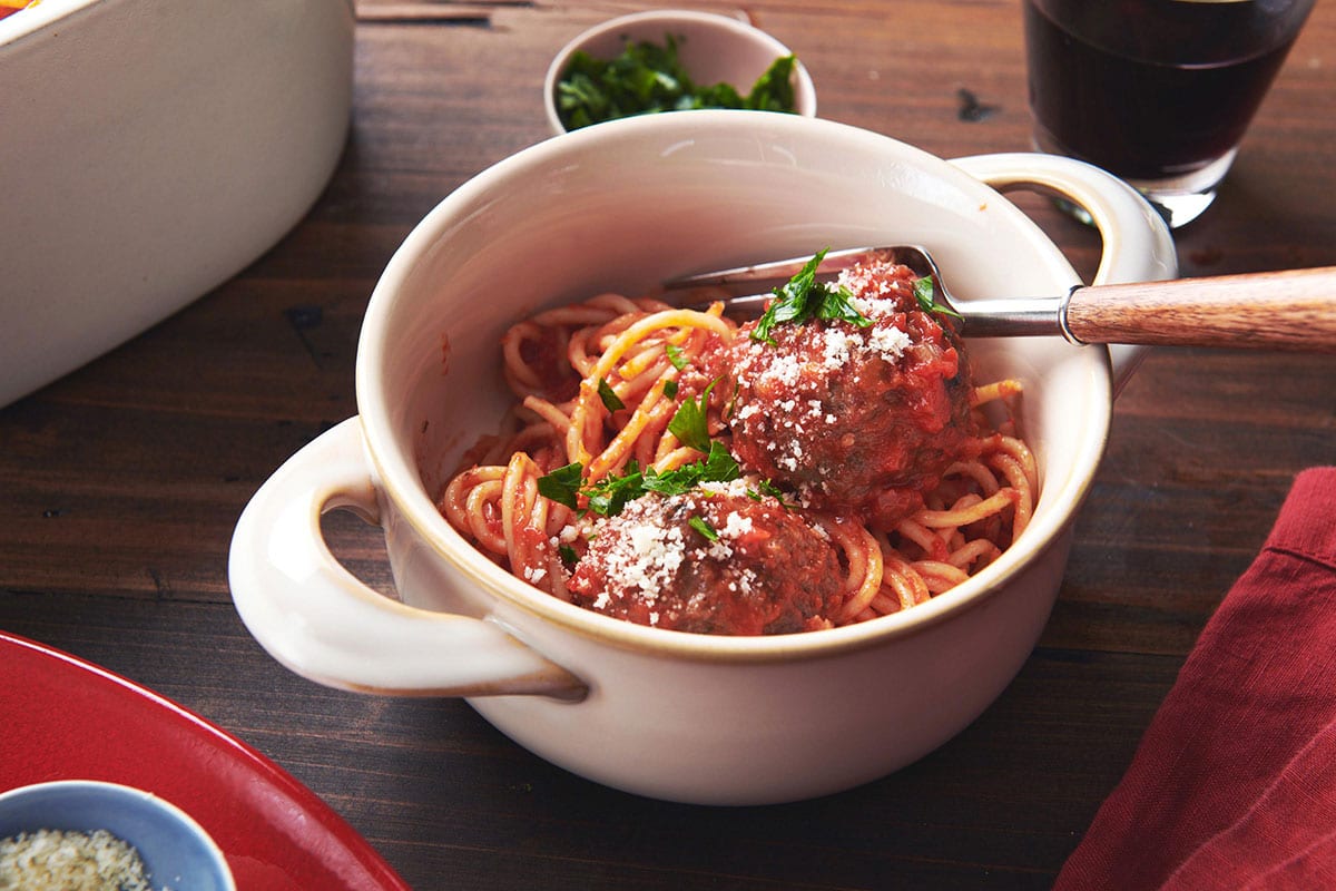 Spaghetti with Meatballs: Spaghetti and meatballs tossed with red sauce is an Italian classic, makes people happy, and just will never go out of style.