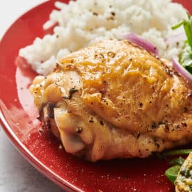 Air-fried bone-in chicken thighs are one of the easiest ways to get crispy skin and juicy, flavorful meat with minimal effort. The circulating heat of the air fryer browns the skin beautifully while the bone keeps the meat tender and forgiving, even if you cook it a few minutes longer. This simple method uses just olive oil, salt, and pepper as a base, with plenty of seasoning ideas to change things up once you’ve mastered the technique.